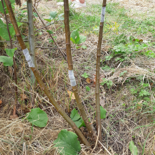 Pour les pommiers, le porte-greffe est toujours un Malus (pommier). Au verger, nous avons greffé sur des porte-greffes M9 qui ont une vigueur de croissance faible dans le but de donner un petit pommier (basse tige ou à palisser).